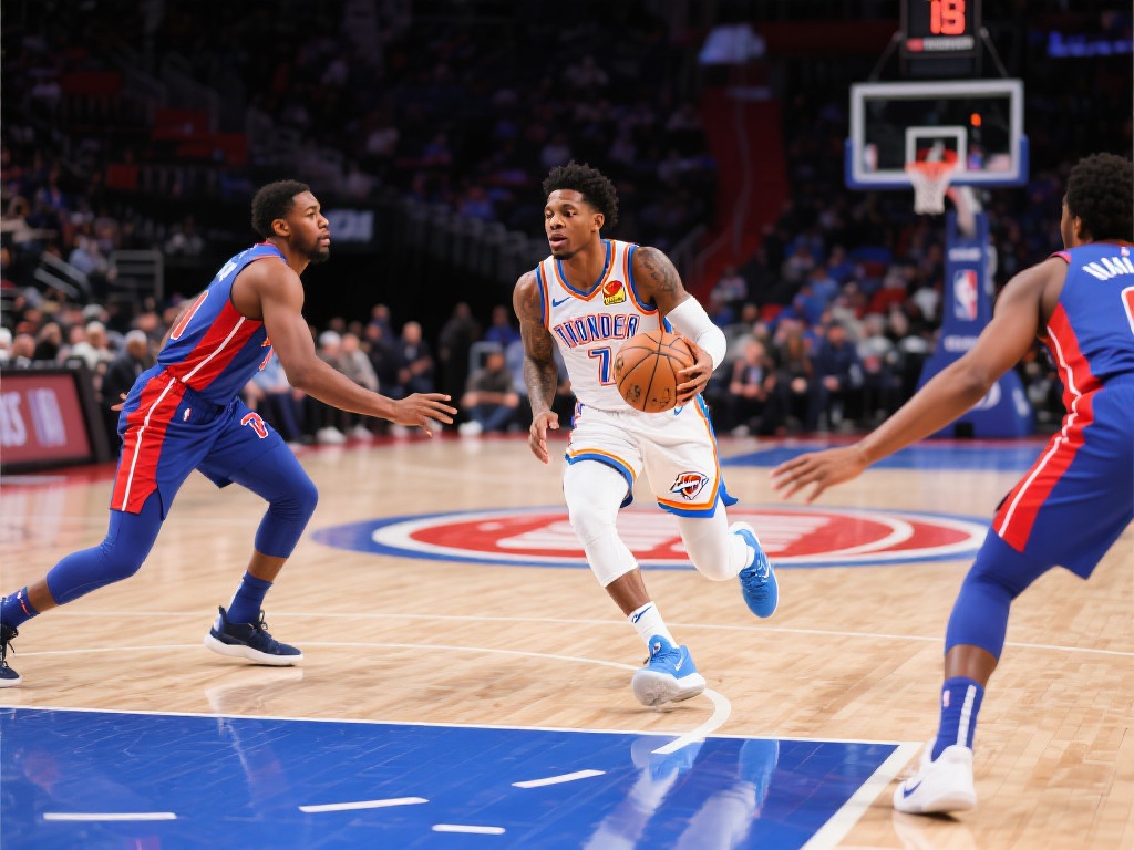 施罗德绝妙突破上篮得分,雷霆半场领先活塞6分